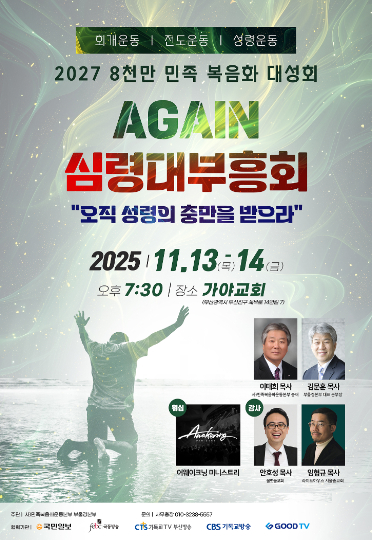 민족복음화 운동본부 부울경본부의 첫 부흥회 '어게인 심령대부흥회'가 11월 13일부터 14일까지 이틀 간 가야교회에서 개최된다.