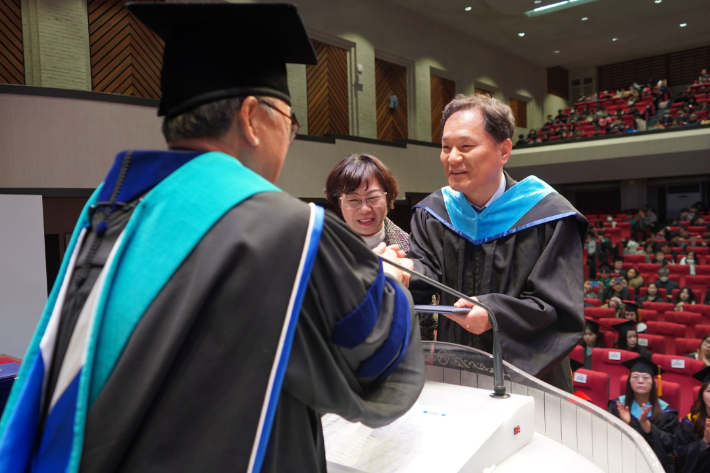 2부 학위수여식에서는 이정기 총장의 학위증서 수여와 훈사, 학교법인 고려학원 이상일 이사장(학교법인 고려학원)의 격려사가 진행됐다.
